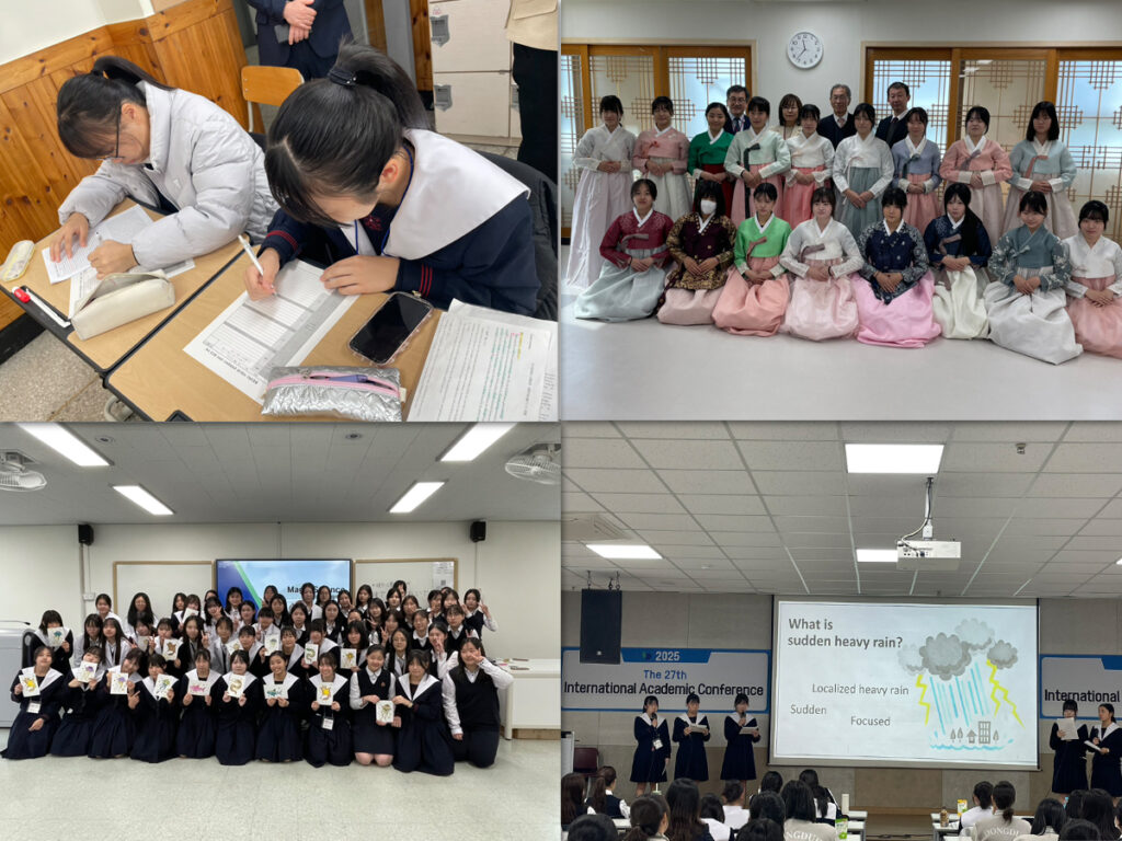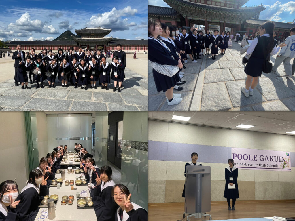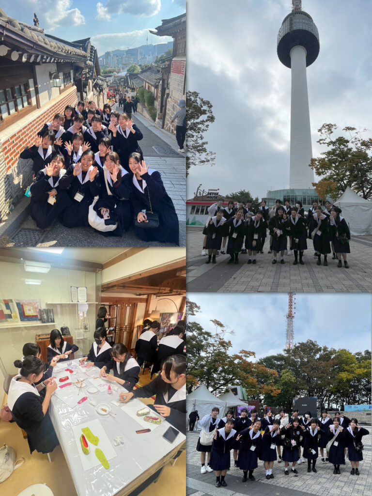 無事に韓国へ到着し、昼食にはプルコギをいただきました。その後に訪れた景福宮では、崇徳女子高校のボランティアの生徒さんが日本語で丁寧にガイドをしてくださいました。夕方には学校で歓迎式が行われ、生徒たちは温かいおもてなしに深く感動していました。