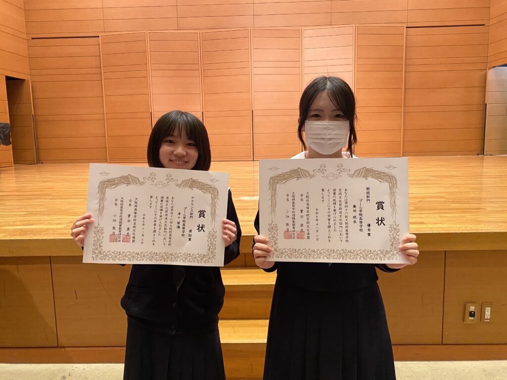 11月2日(日)に実施されました大阪府高等学校芸術文化祭の放送文化部門で、優秀賞(朗読部門)、奨励賞(アナウンス部門)をいただきました。朗読部門は、来年の秋田総文2026(全国高等学校総合文化祭)に出場します。