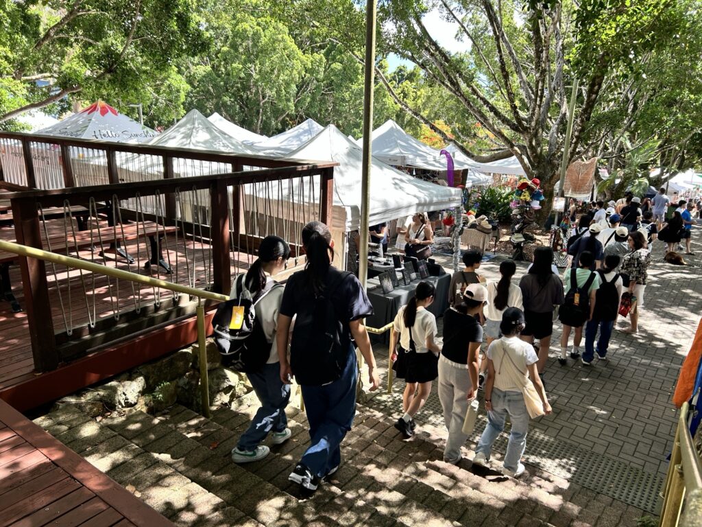 10日(水)午前はユーマンディマーケットへ行きました。日本のフリーマーケットのようなところで、たくさんの雑貨が売っています。はじめにマーティン先生の説明を聞いて、それぞれ、買い物に出発しました。個人のお店が多く、英語でのやり取りが必要で生徒たちは一生懸命に英語を話していました!午後は、スクールに戻り英語のレッスンを受けました。