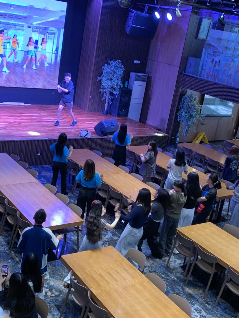 今朝から授業が始まりました。生徒によって毎日スケジュールが違うので、自分でしっかり管理して動くように伝えています。早速9時〜17時までフルで授業があったりですが、心身ともに整えながらレベルアップして欲しいです!自習室を利用して学校の勉強をしている生徒も少なくありません。今朝は朝食時にダンスの時間があり、ノリのいい国際コース生徒ですので前で踊って目立っておりました!英語を使って色々チャレンジして欲しいです!