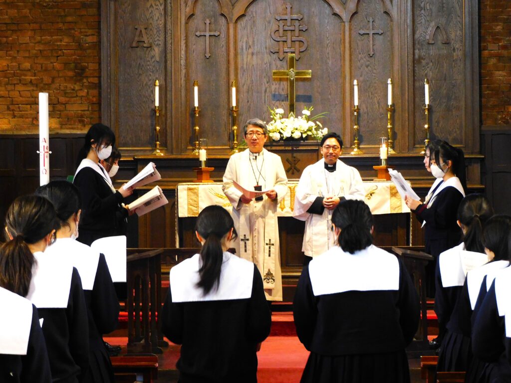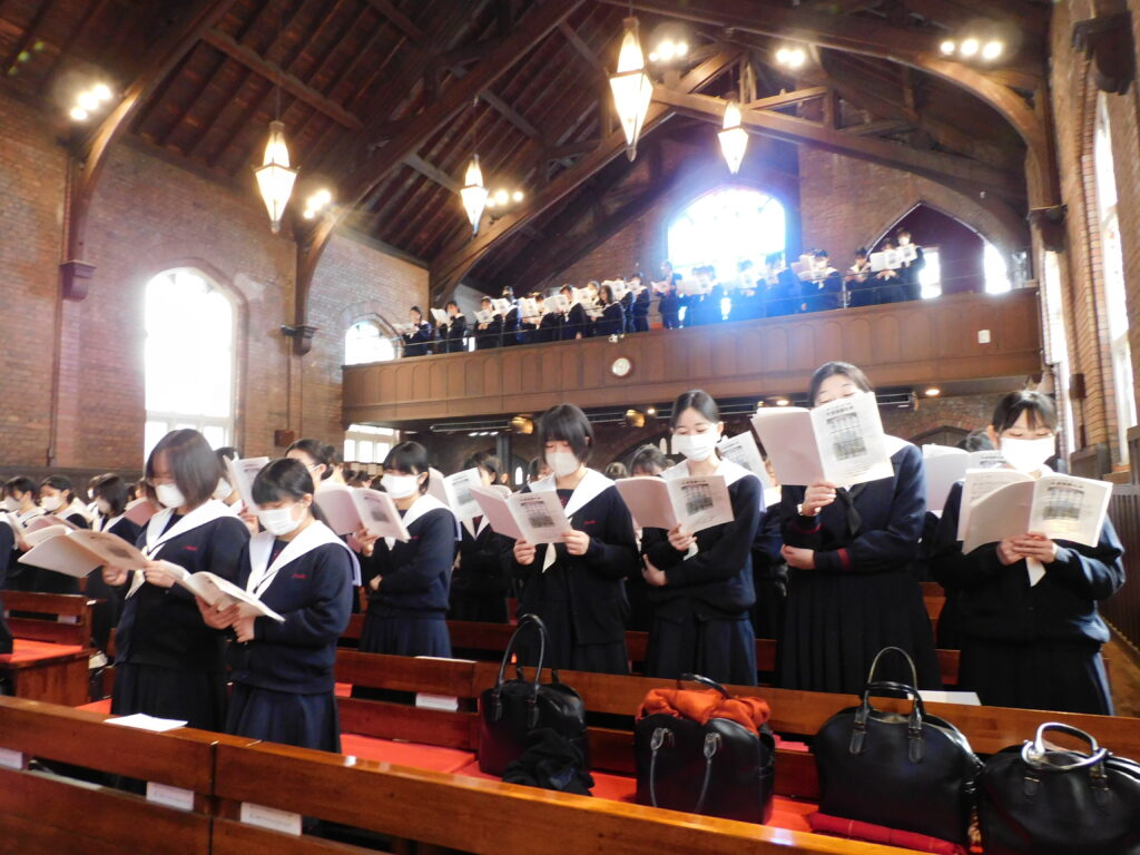 2月13日(金)、10時より日本聖公会川口基督教会にて、高Ⅲの卒業感謝礼拝が行われました。本校では、卒業感謝礼拝と卒業証書授与式を合わせて卒業式と位置付けています。礼拝のメッセージでは、理事長の磯晴久先生と同教会の柳時京司祭からお言葉をいただきました。神様の祝福のもと、生徒たち一人ひとりが、それぞれの道を歩んでくれることを願うばかりです。